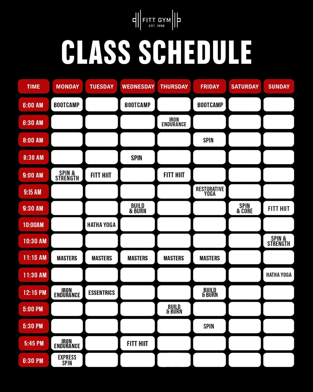 All group fitness classes, including Strength & Sweat, Boot Camp, Spin, Step, Yoga, Tabata, Strength, Sweat 45, Masters, and Stretch & Stability, are included with the Ultimate All Access Pass. Please note that the Standard Membership provides unlimited gym access only and does not include group classes.