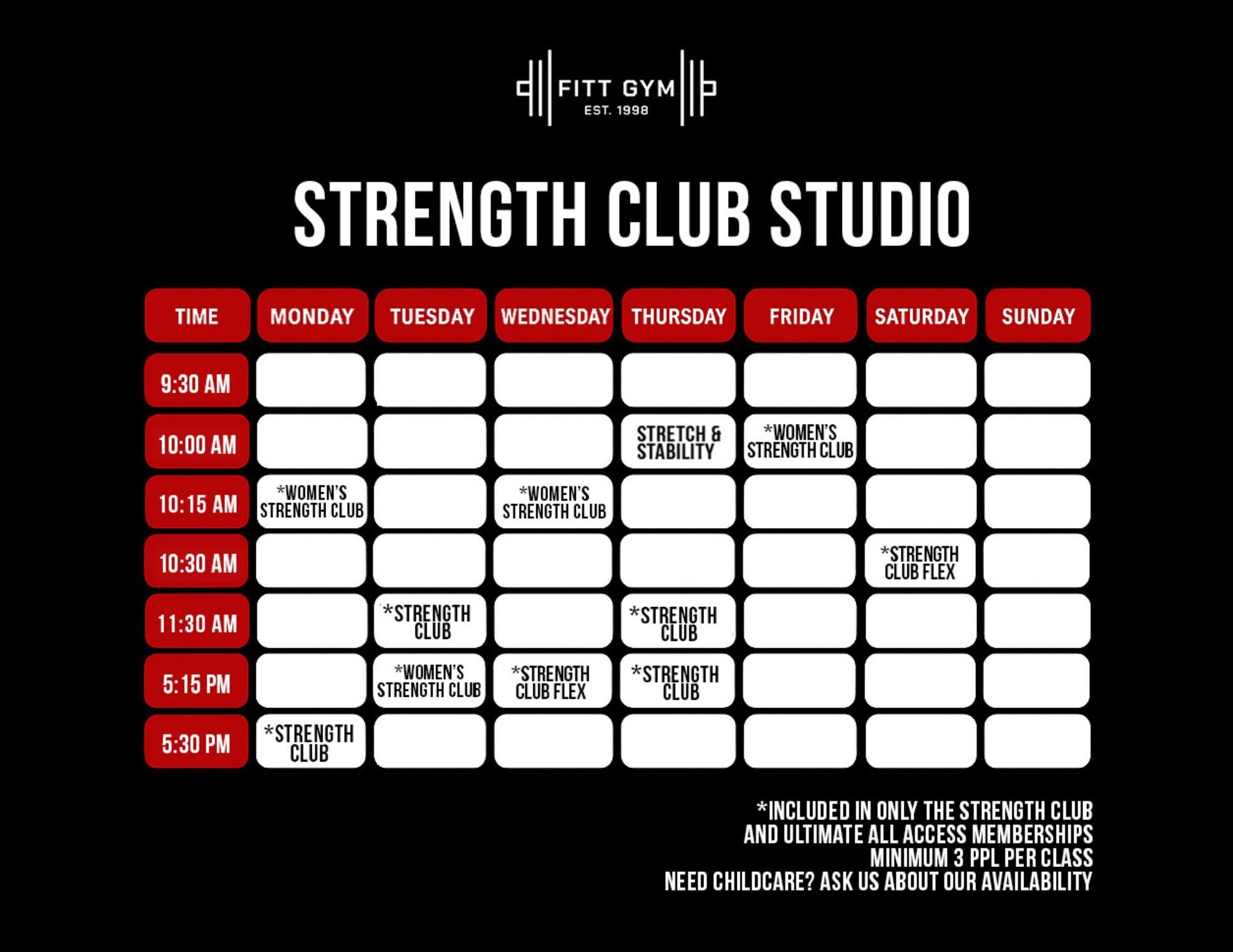 Child Care: Available Monday, Wednesday, and Friday from 9:30 am to 10:30 am at $5 + tax per child per day. Must be booked in advance. This service is for open gym use only and does not include The BarBelles mom class unless enrolled separately.